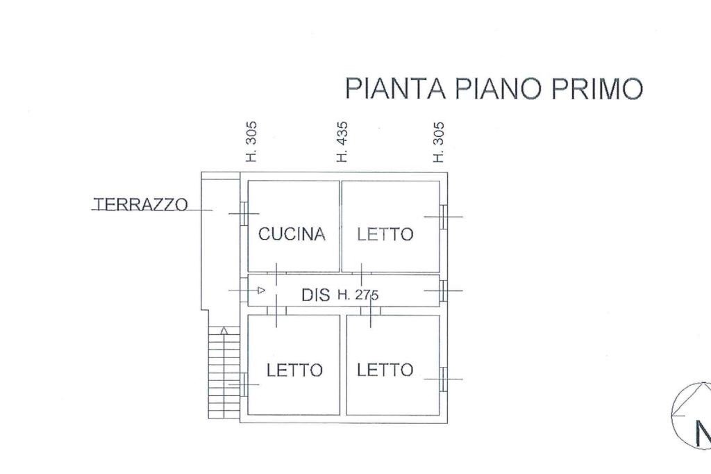 Il fabbricato, che misura circa 120 mq, si sviluppa su due livelli: al piano primo, si trova l’abitazione principale composta da un disimpegno d’ingresso, una cucina abitabile e tre camere da letto.