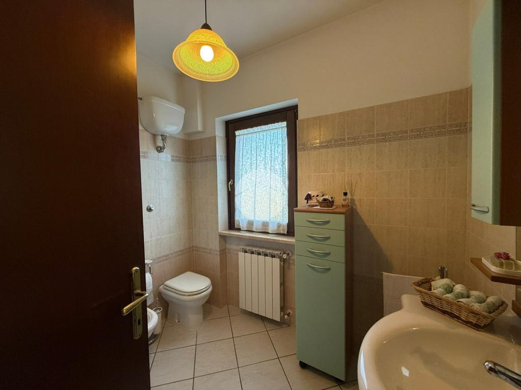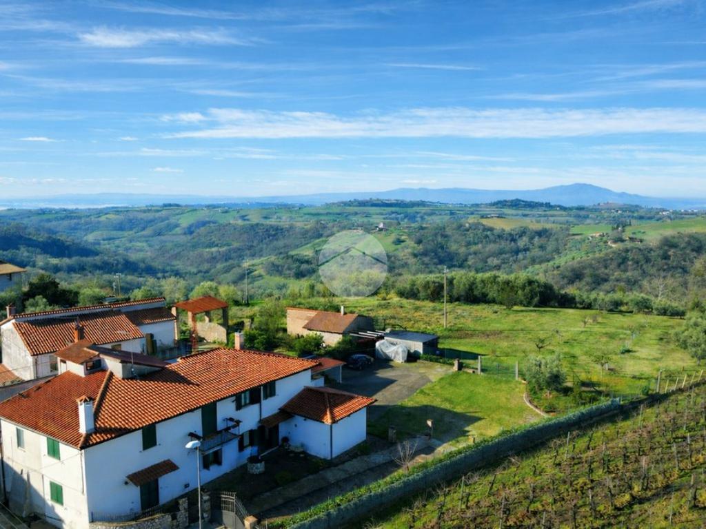 Il piano primo ospita la zona notte con quattro camere da letto, due bagni, un terrazzino e un ampio terrazzo panoramico esposto a ovest, con splendida vista aperta sui Monti Cimini e suggestivi tramonti.