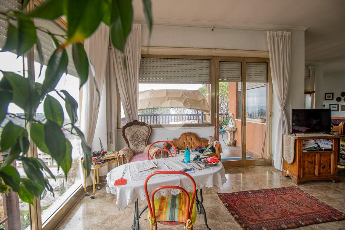 Piano alto con vista panoramicaAppartamento su un unico livelloDoppia zona giornoTerrazzo vivibileCaminoPosizione strategica, vicina al centro storico ma in contesto tranquillo